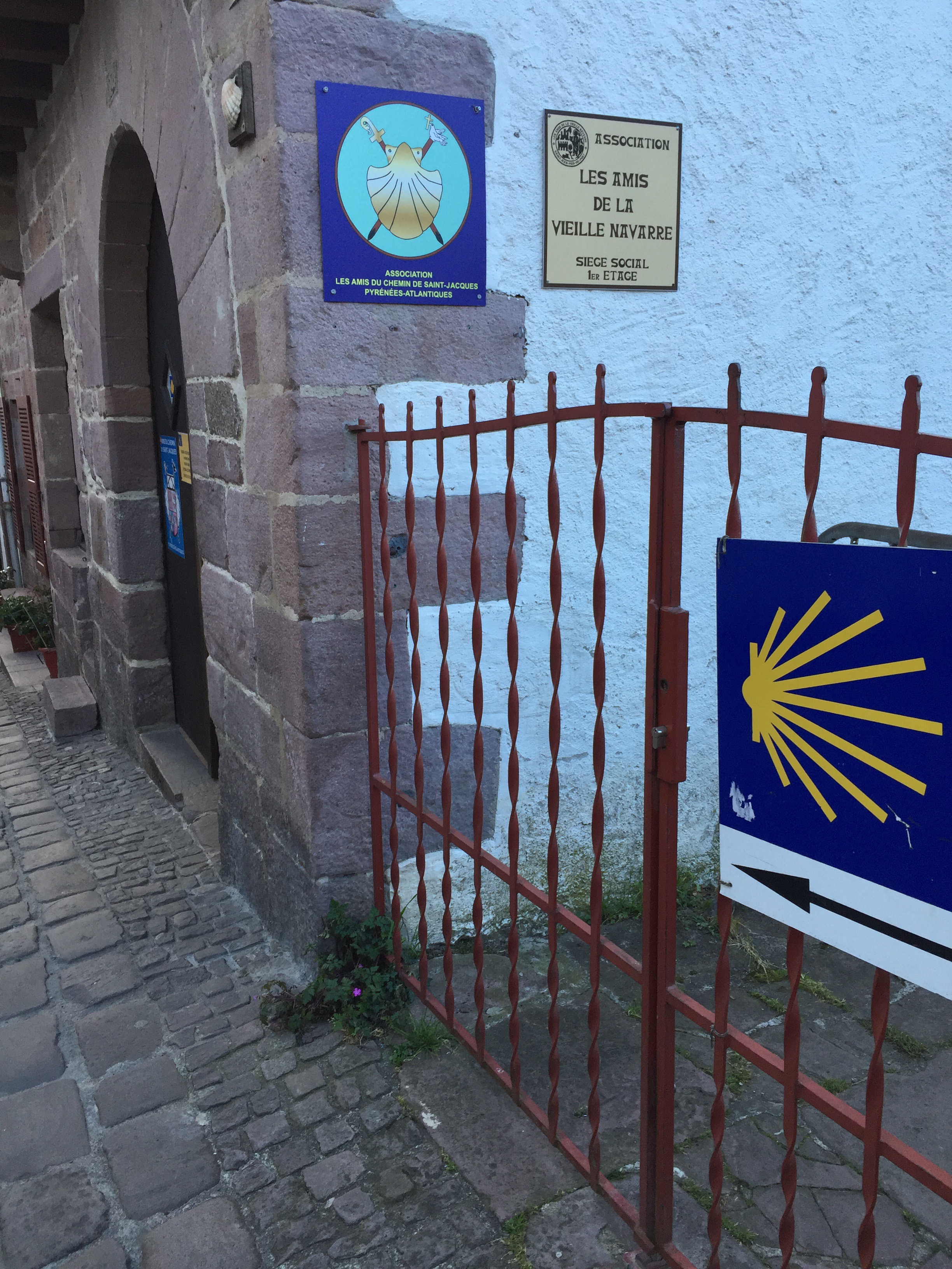 St. Jean Pied de Port is a charming town and luckily a little less observant of today’s Good Friday holiday. While everything in Pamplona was shuttered, SJPP was bustling with tourists and pilgrims alike. We went through a medieval arch and towards the left up a steep cobbled road to the Pilgrim office where we were greeted and our name and origin were logged. For 2 Euros donation we received our pilgrim passports that we get stamped along the way. Suzy waited midway because she had an enormous bag that happened to be filled with our provision (olives and snacks), wine and even a guitar. She’s on a longer journey than I am, eight months of travel from home. We arranged for a service that will take her pack in the morning to our next destination, Valcarlos. Meanwhile my pack, despite all the obsessive weighing and logging is about 21 lbs, but yesterday was sunny and warm and I wasn’t wearing the heavier items.
