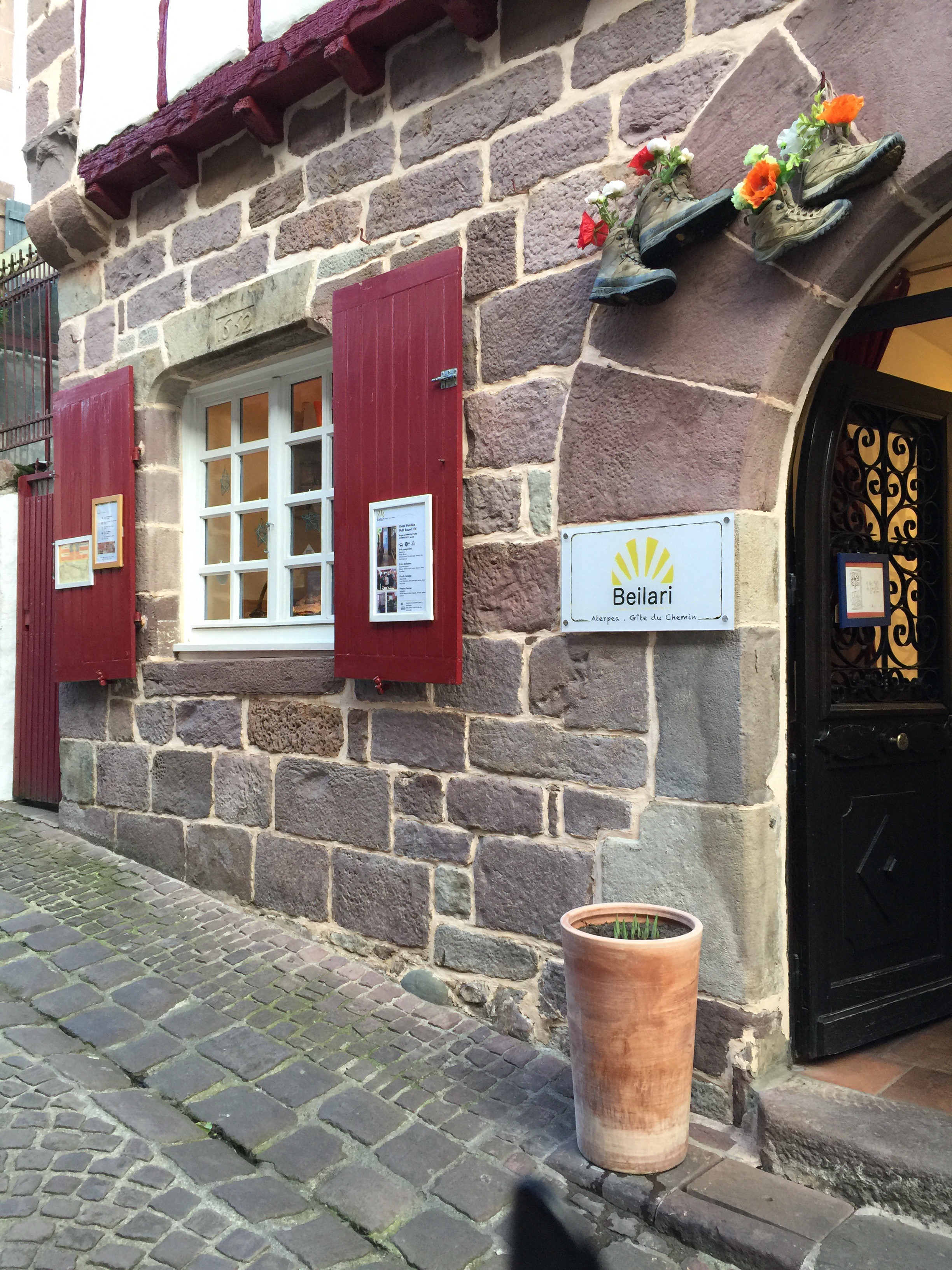 Surrounded by a moat it has stunning views of the countryside but as we discovered you’re not meant to enter the courtyard which is now a college (we were scolded). As the sun started to wane we saw some clouds building and a breeze starting and headed back through the town where we noticed a store we’d walked right past upon arrival! And there they were the poles I wanted. I splurged for the ones that can fold to fit in my pack and are very light weight. They help propel you forward and take a lot of strain off your body. The shopkeeper gave me a demo and added on the mud attachments and I was set. This store by the way is the REI of SJPP, the have a ton of great equipment that I already had and they’re open 6am to 8pm!