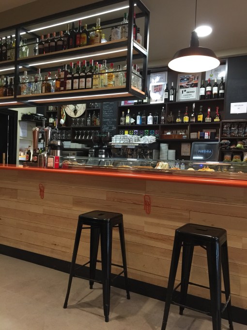 We had some left over snacks and enjoyed a protein packed breakfast of lomo (cured pork lion) and boquerones (sweet Spanish anchovies) and cheese. We stopped at a small cafe for a coffee and it was off. Same scenery as yesterday but somewhat monotonous. Wide track easy on the feet but with a long long slow incline. We passed by a sheep farm where the bleating sent us off with good intentions.