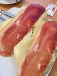 The slog into Burgos seemed to go on and on so it was nice to see Mark and Helena catch up to us. We headed in and with aching feet opted to wait to check into our hotel and instead hit a tapas bar called La Favorita. It seemed a bit fancy and maybe a bit modern but it had reclaimed wood everywhere and was warm and comfy. The Italian guy with bad feet we’d seen upon occasion was even there. We were gluttonous… gorging ourselves on anchovies and olives, baby eels, ceviche, the pork belly cracklings, and then we found the foie menu! Three kinds! We did all three.