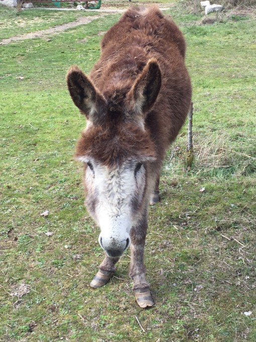 After trying the slippery rocks I opted for the grassy area with rugged boulders. It was much better. Between the poles for the downhill and my imagined goat like ability that I manifested for today I scrambled down the hill at top speed till we reached a track that had the creamy colored gravel we both really enjoyed walking on.