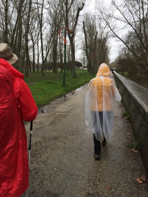 Someone had warned us of “flashers” entering Burgos so we carefully inspected any oncoming walkers. The first we decided were definitely flashers turned out to be just a couple, yeah a man and a woman with short hair on a walk. The next, for sure a flasher with a dog to provide an alibi… um, until we realized he was visually impaired… it was a guide dog. Yikes sorry! But as we kept on and on through the park and near a tunnel near the river there were a few sketchy men, who knows. We kept them in sight. One man pretended to be watching the water and although I was right behind Suzy he immediately peeled away from his water sojourn to follow her, getting in between us very close despite the whole area being wide open. I said, “Suzy hold up! I’ve got to fix my shoe!” And she tuned around and came back so we could be behind him. He did glance back at us as he kept walking. Just better to have a code word or something and watch each other’s backs. Another day I was happy to have a partner.