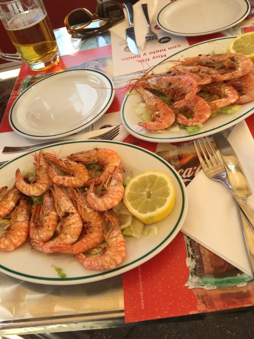 We all settled in and then set out to get some food, I’d really been craving Gambas a La Plancha and of course the universe provides and we found an amazing place with Gambones and Langoustinas, bothbtranslated on the menu as “prawns”…so we got both although surprisingly the Langoustinas were the smaller ones. They were a bit more salty and the Gambones a bit sweeter and more meaty. Both delicious! Then onto the well equipped grocery in town to stock up on snacks. We were warned that this next stretch has absolutely nothing (no water, food, facilities) for 17.2 miles.
