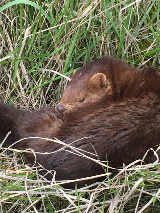 Not much other reason to hang around we set out and started walking a very long flat path to Fromista alongside the Canal Castillo. The path is sandy and steady and generally easy but seems to go on forever. Luckily we were distracted by a flash of brown weaseling across the road. I thought there’d be no way to catch up to it but saw a rustle in the grass and there it was! It was some sort of ermine, mink, ferret who knows but it was laying in the grass with its head hidden as if it thought that if it couldn’t see us we would not see him. I tried getting out a hazelnut but it wasn’t interested in it. But it did then come writhing out of the grass closer to us. As I tried to get in to take a photo I gave Suzy one of my poles… just in case. I could envision the creature who looked so harmless lurching out of the weeds and attaching to my neck. Suzy would be grasping for the tail as it went for my jugular… but luckily that didn’t happen. We watched him for a while cleaning his fur, he was super cute and an entertaining diversion on the boring road.