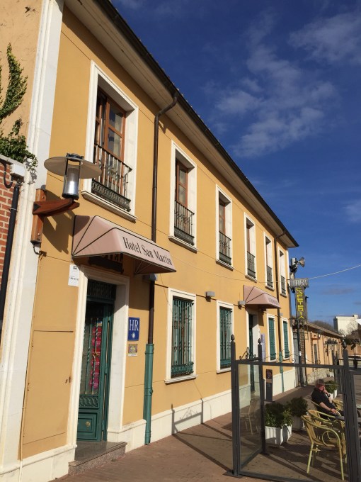 Fromista was cute but smaller than expected. When we got in we found the Municipal Albergue, Suzy opted to ship the bag there so we could go wherever. It wasn’t open yet so we had some lunch at the Hotel San Martin. I had some delicious calamares fritos and a glass of Montecillo Rioja. We decided to just go ahead and stay at the municipal, the woman there was so nice, Carmen, and it was 9 Euro and the bag was there so… it seemed clean enough. She also had some incense burning which was soothing.