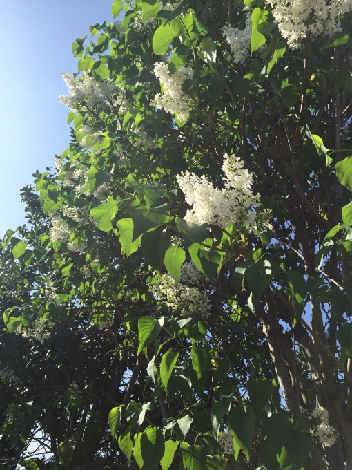 Our walk began and we noticed new spring flowers erupting from the roadside. Orange poppies, wisteria and purple and white lilacs. The purple had a very subtle and elusive smell, but the white were haunting, the smell reaching you even before you sighted them.
