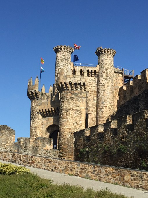 We entered the town and turned a corner and gasped at the vista of a medieval castle that popped out behind the corner. It was absolutely stunning. We probably would have walked past but a Korean pilgrim was coming down the road and told us that admission was free today so we went up and found that this was the castle of the Knights Templar! We toured around and walked up the steep steps but were too fearful to climb the tall turret around the steep stone circular staircase.