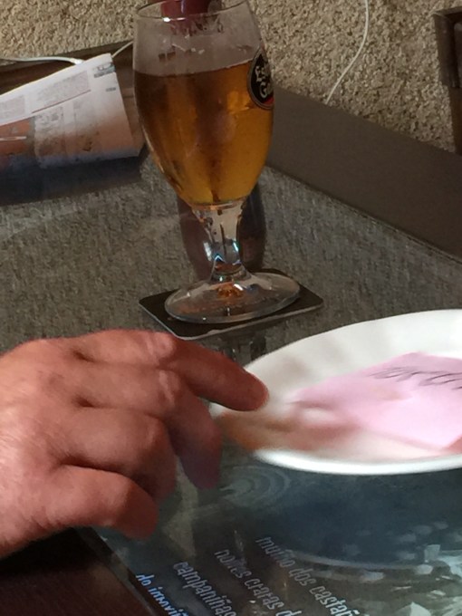 No bathroom stop here for me so on we went until miraculously we came across a bar that looked empty. We walked in and I ordered a beer as Suzy ambled toward the aseos (bathroom). Immediately the owner hollered to her, something like, “Can I help you? Where do you think you’re going?” It was in Spanish of course. Suzy replied that of course she was going to have a beer too and he begrudgingly allowsd her to access the bathroom. I followed her soon after worried that the teeming march of pilgrims were on our heels.