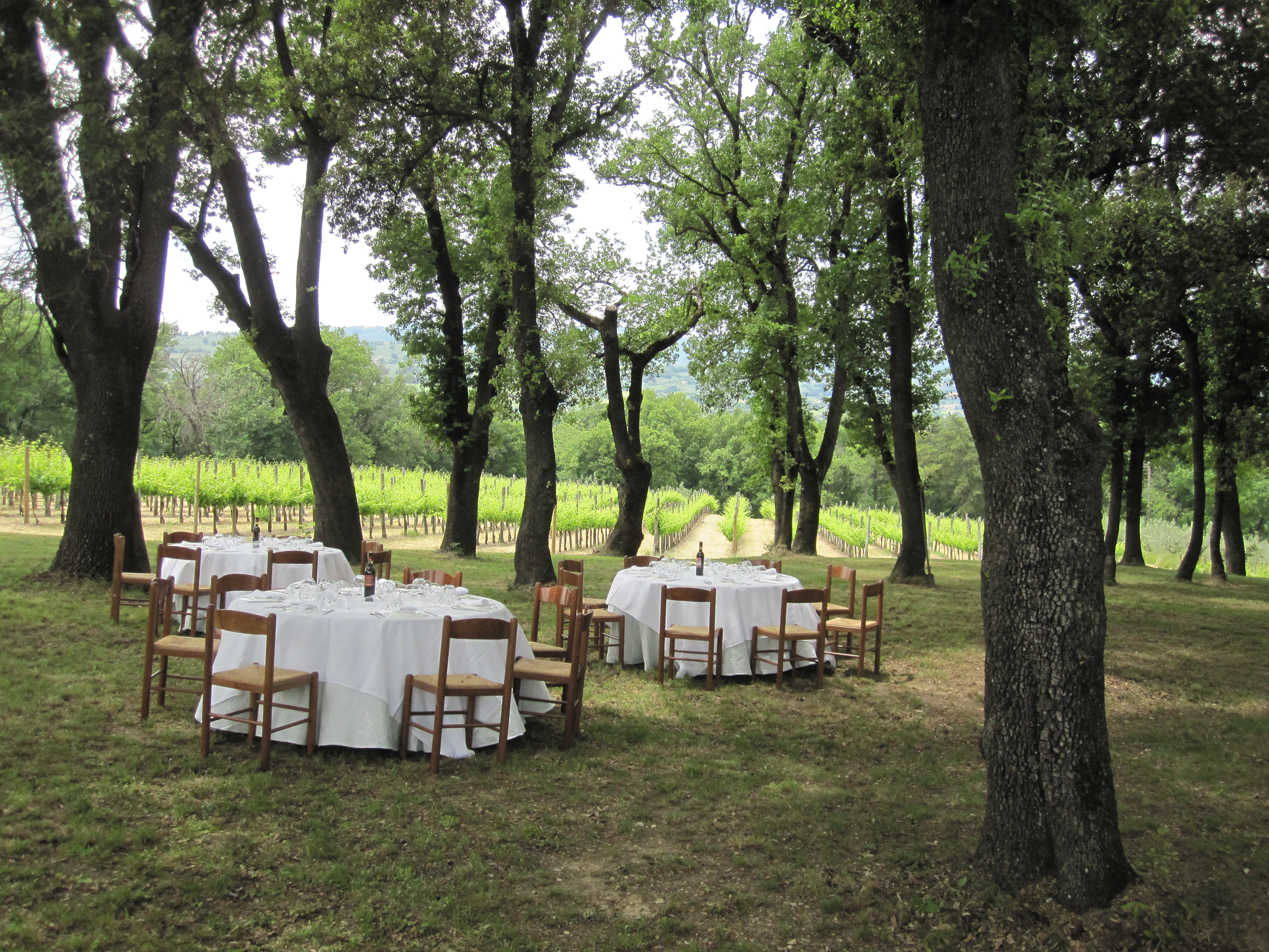 After our tours it was off to a picnic at Arnaldo Caprai to celebrate the day of Cantine Aperte for Umbria (May 30, 2010)www.movimentoturismovinoit The winery was bustling with lots of people there to taste and eat and overall the crowd was very young and seemed very excited to be there. It apparently happens around Italy offering a chance for tasters to visit wineries for the day. We enjoyed some amazing super fresh mozzarella, like Burrata, but small, super orange and sweet yet firm melon and some amazing prosciutto. Lunch was of course a repeat of these items plus a pasta with tomato and chicken livers, super al dente in texture and delicious, then grilled local lamb and sausages from Bevagna, and Chianina beef. We tried some of the experimental trials at the winery, a Syrah, Petit Verdot and Tannat, all 100% and all really amazing. I was a real fan of the Petit Verdot which although tannic was really delicious and not as herbaceous as you might imagine.