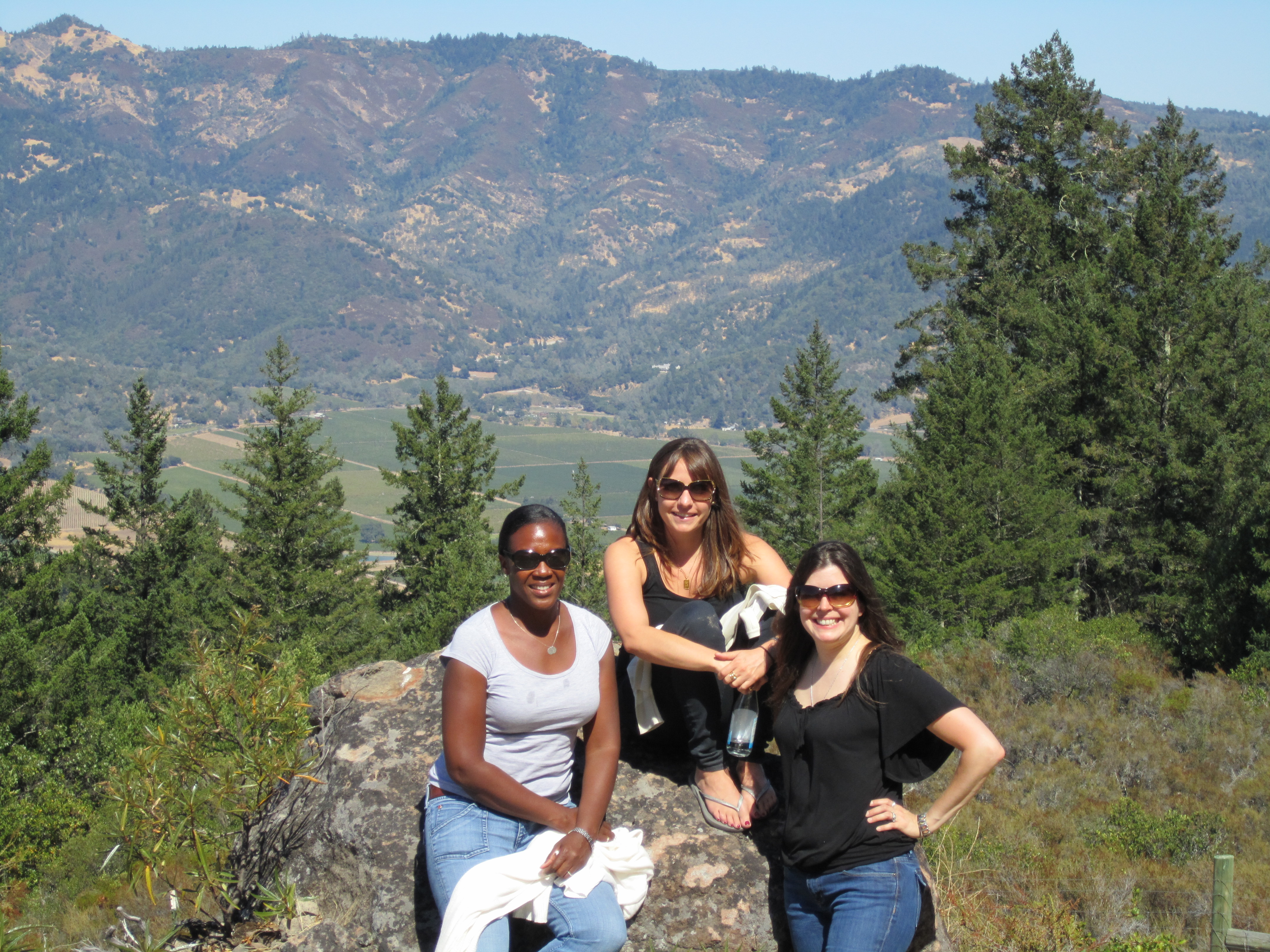 Just as we were digging into our food Nancy warned us that there would be snacks at the next two stops, but we could not resist the juicy burritos and the amazing chips. The next stop, Checkerboard, does not even have any wine to taste yet, but they wanted us to see the site which was way up valley in the Diamond Mountain appellation near Calistoga. Although we did not get to taste it was a refreshing and needed break after the big wines of the morning and we took ATVs through forests all the way to the top of their property where we got an amazing view of the northern part of the valley. When we arrived there was an amazing spread for us, Calistoga waters (of course), gazpacho, shrimp skewers, cheeses, we enjoyed the picnic and the fact that we were their first tour EVER!