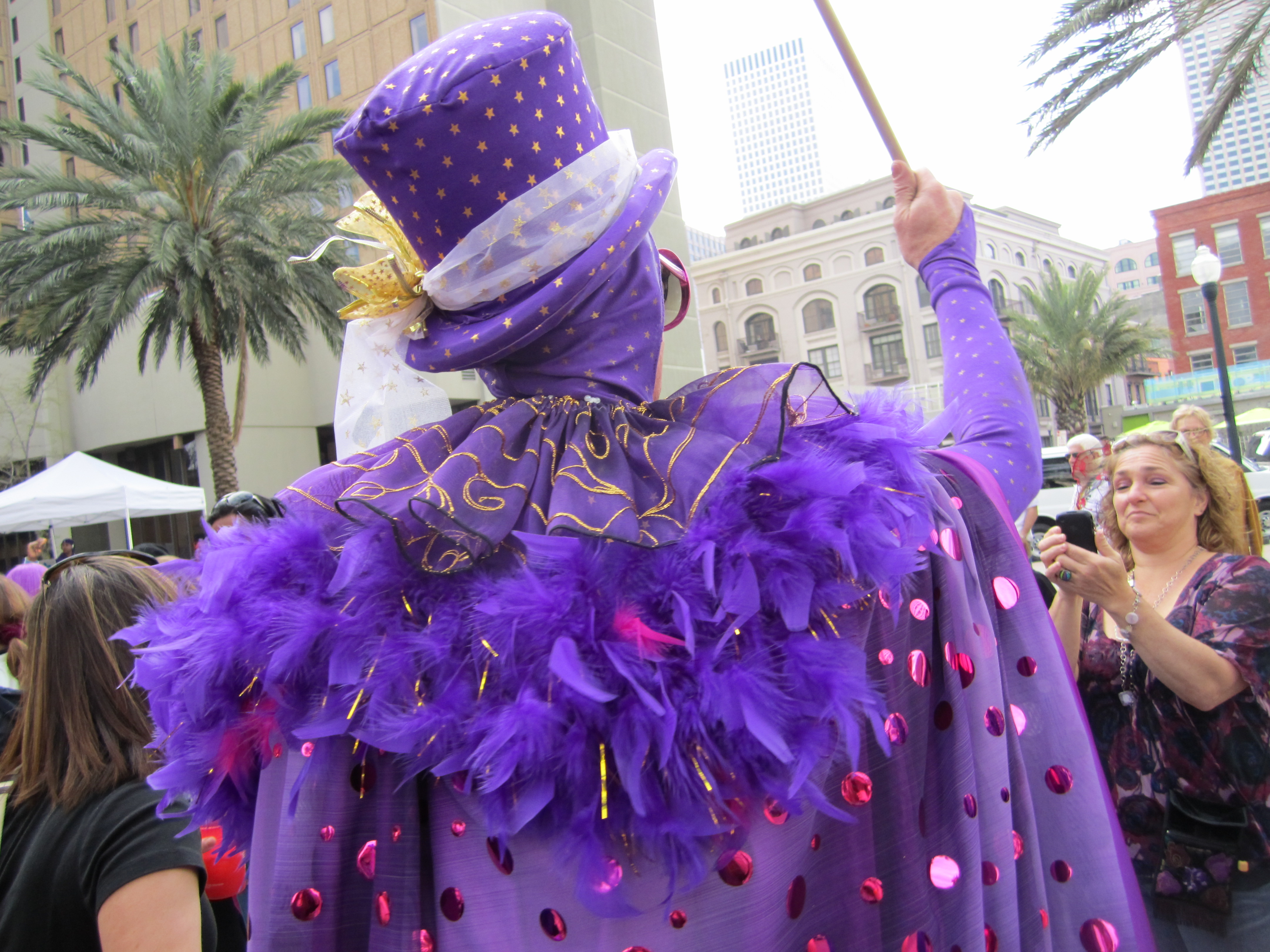 Within seconds a woman from the next table hopped up and said, “In most places there’s six degrees of separation, but here in New Orleans it’s one, my friend Stuart is the one that runs the purple party! He’s sitting right over there.” She pointed…