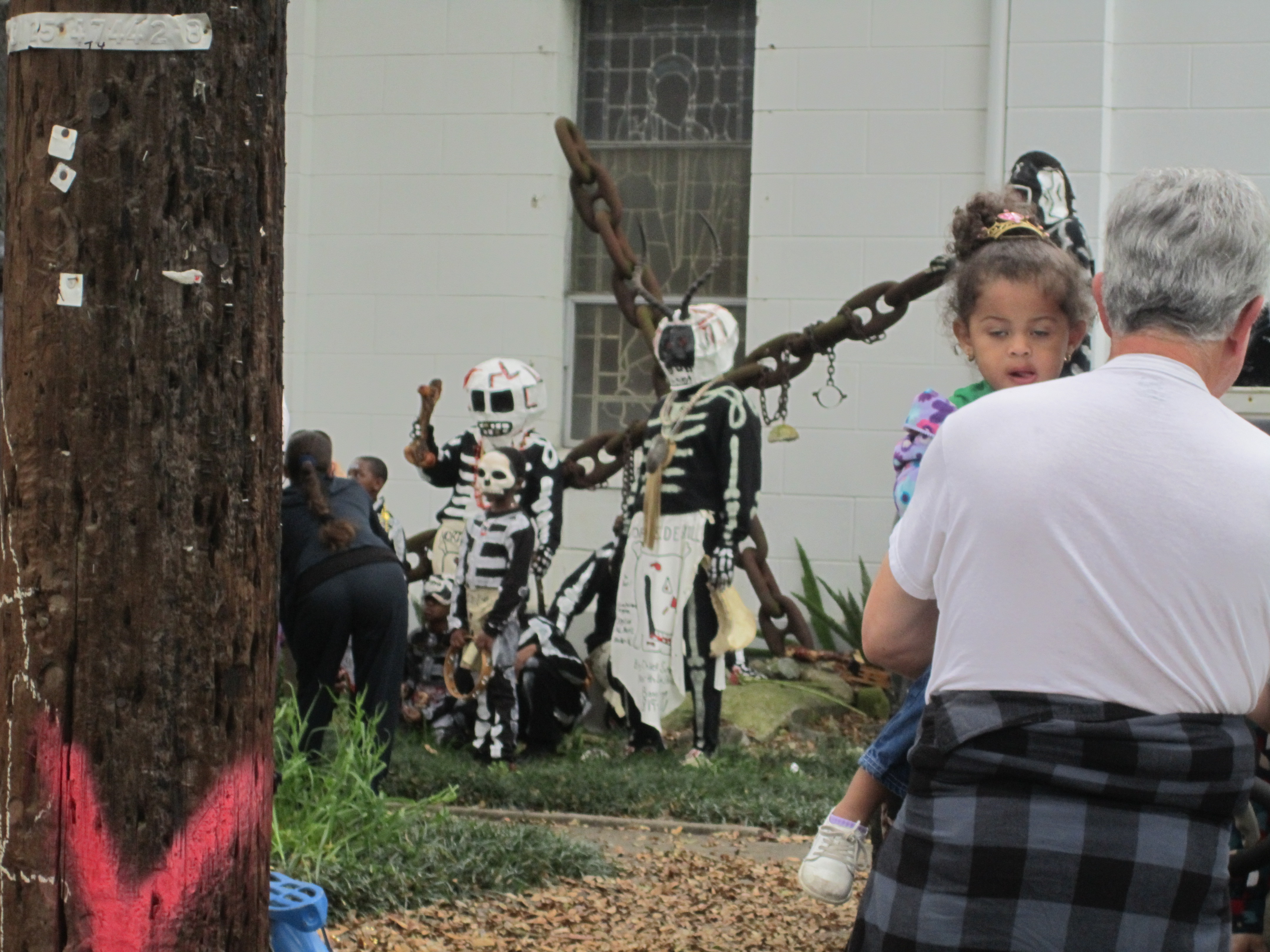 We hit the Bywater Cultural Center but unfortunately there were not yet any Indians there. We had to pick up another part of our group Susanne, and right where we grabbed her there they were, the Skeletons. Amazing with the enormous chains behind them, said to be a relic from a slave ship.
