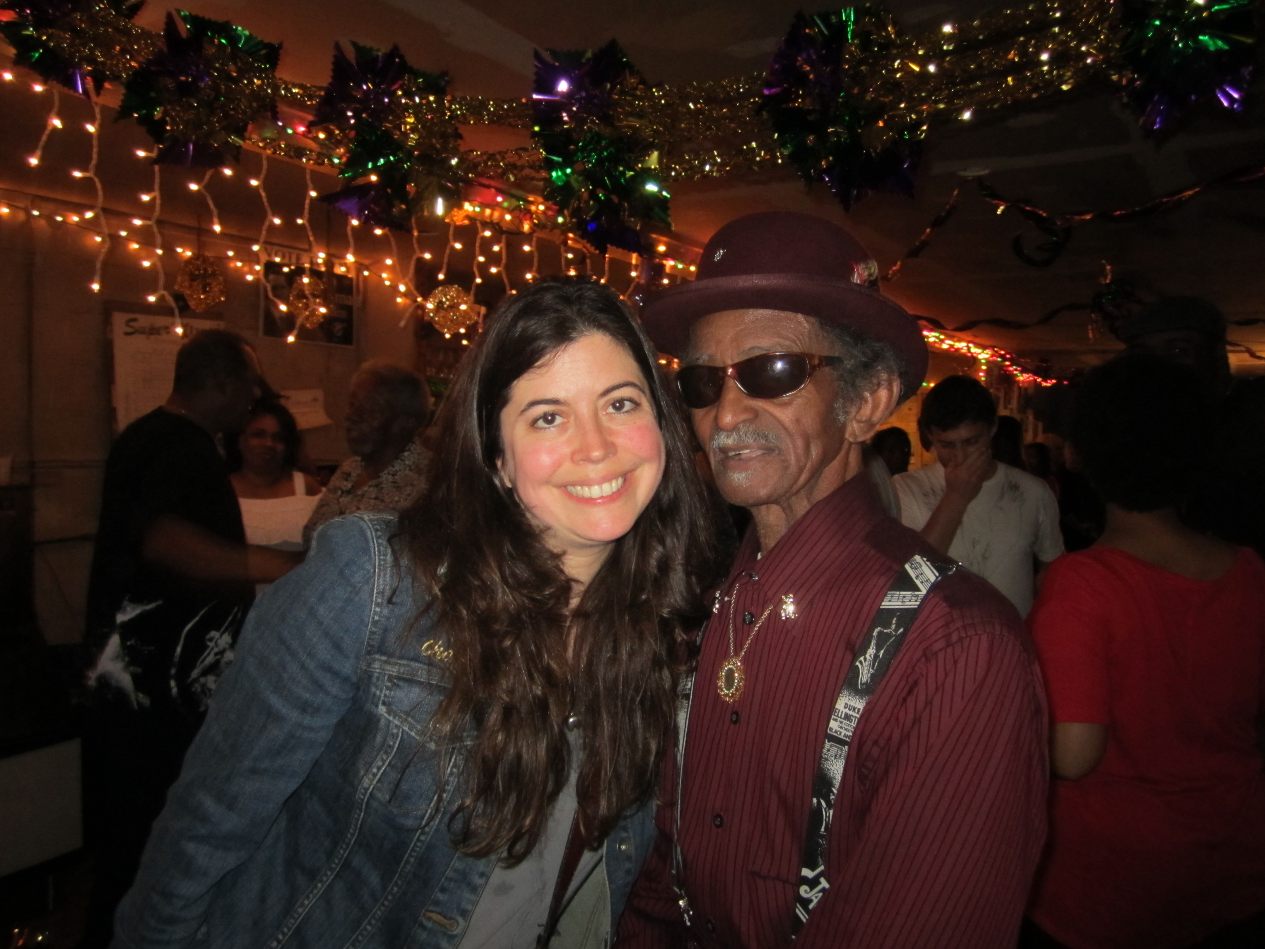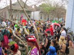 We continued on after the Candle Light on to where we saw the Zulu parade was ending and happened upon the celebration at the end… We were right in front of the Zulu Social Aid and Pleasure Club. As we stood there deciding what to do, our friends decided to grab a beer and walked in, so we followed. We were received in a polite yet indifferent attitude. I was so honored to have been allowed entry into this special place. We continued on our journey, and I offered my little bow and arrow to a child along the way. We found that many wanted to have their photos taken with us as we passed their door steps. We also heard a young girl say, “Where are your beads!?!?” in horror, and I realized that after all this time I had not yet received one strand. As I grabbed the one she tossed me I enjoyed a pulse of exhilaration upon catching it. We finally made it to the wonderful and comforting Emery/Kristian compound where Emery had crafted the MOST AMAZING GUMBO I have ever had. They let me invite Katie and my brother over to enjoy it with us, and we simmered down to a low boil in terms of inebriation, ending the day with a little more music on the guitar but trying not to overdo it. I even got the baby in the King’s Cake which I think means I have to make the next cake or host the next event. We watched the creepy Rex celebration on TV where the young girl and really old Rex hang out at this gala thing, totally surreal. I really wanted to see the French Quarter shut down at midnight on the dot, but once Julie and I got back to our room-cave of darkness it was lights out literally and figuratively.