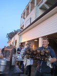 So the day of the journey I was scheduled to judge wine at the San Francisco International Wine Competition, but I zipped out early to be sure I wasn’t going to miss the boat. Alcatraz Cruises does not wait on anyone whether you have reserved regular tickets or are on a special event. Best parking for Alcatraz is Pier 29 next door (but the pier suffered a fire less than a week after our event, so check to make sure it’s operational again…) I got to the dock in time to meet a fun group of the three chefs, Hoss and co-chefs Peter McNee from Poggio and Eric Arnold Wong of E&O Asian Kitchen and their sous chefs (actually legit sous chefs unlike me…although I can set a table and pour soup and whatnot). Also attending were a group of mostly families and their kids, kids had to be at least nine to come and the families were all really excited with all their gear and sleeping bags and such.
