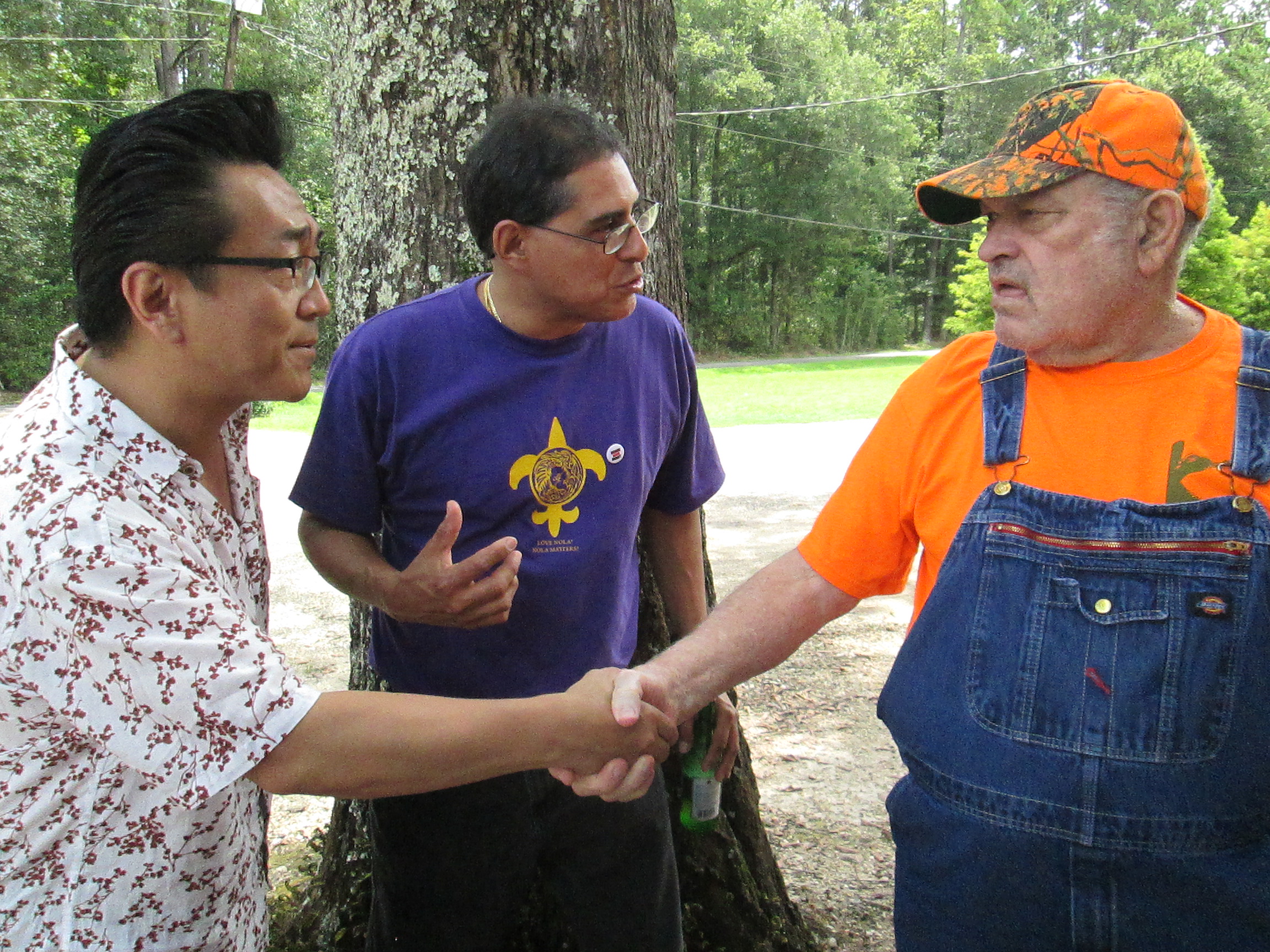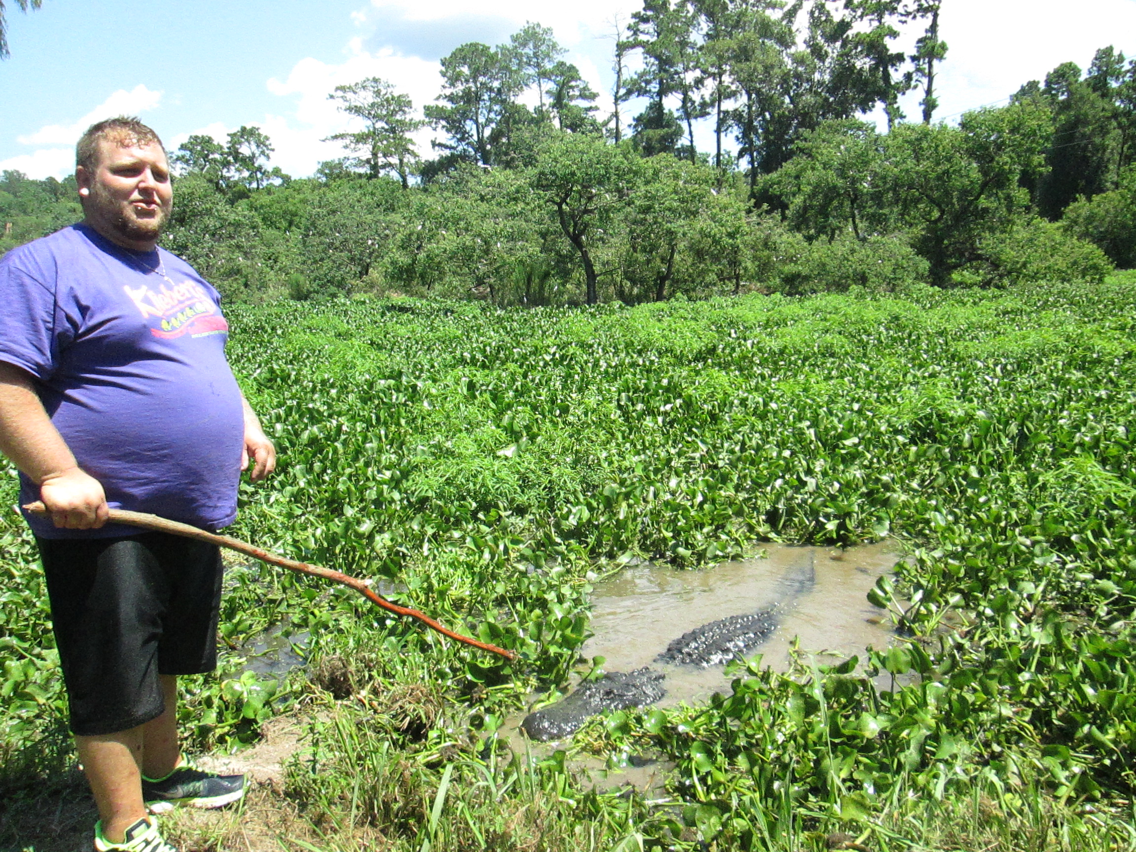 The next day we were “scheduled” to leave NOLA by 9 am so that we could go to the farm, we had rented a car that would fit our group, but in typical Julio fashion the more the merrier. Suddenly our international group was huddling outside the Monteleone Hotel interrupting the flow of traffic down the sidewalk. The international contingent of bartenders, writers, etc. was amazingly chatty for being so hung over, or maybe they had never sobered up, but at any rate with a lot of back and forth logistics (it’s really expensive to rent a car apparently if you are from Russia, Italy or Japan) we got two more cars rented and planned to meet the rest of the group out at Harrah’s Casino. Vince was put on patrol to try to herd the folks to the main valet entrance which as you can imagine was close to impossible what with the language barriers and large personalities. With a few trips to Walgreens (for ice for the beers), numerous bottles, limes, avocados and cups being moved in and out of vehicles and rearranging and distribution of tequila bottles and Trumer Pils between each vehicle and me handwriting directions for everyone we finally got all the participants close to ready by 10:30. The caravan left Harrahs and headed toward the swamp in Hammond, LA. In all the times I have been to New Orleans I’d never visited the swamp, and wow, the scenery was immediately different than anything I have ever seen. I was immediately struck by how incredible it was, made me feel like the first time I had been to Arizona… a sense of a uniquely wild part of our country with treacherous animals but completely the opposite, all about water and damp heat rather than desert dry heat… The scenery was beautiful but there was a great level of distraction as we attempted to communicate with the three Russian barmen who were in our car. One spoke English which was helpful, one was shy and understood most English but didn’t talk much and the third spoke no English, barely understood and was out of control talkative. And of course he was sitting next to my friend Michael who was attempting to drive. Vince and I in the far back cringed as the stories flowed faster as he drank more Tapatio Anejo and he became increasingly animated. He would speak in Russian and then hit his friend to translate and also hit Michael’s shoulder impoloring him to look at him. Then a bit of sign language to which Michael would try to glance and smile while keeping one eye on the road. This became particularly interesting as we entered a total downpour and began weaving back and forth over the lane markers… Luckily Michael was sober and able to keep us on the road, but it was harrowing to say the least, and at the same time amusing. When we thankfully got to the farm we piled out and met T-Mike, grandson of Harvey.