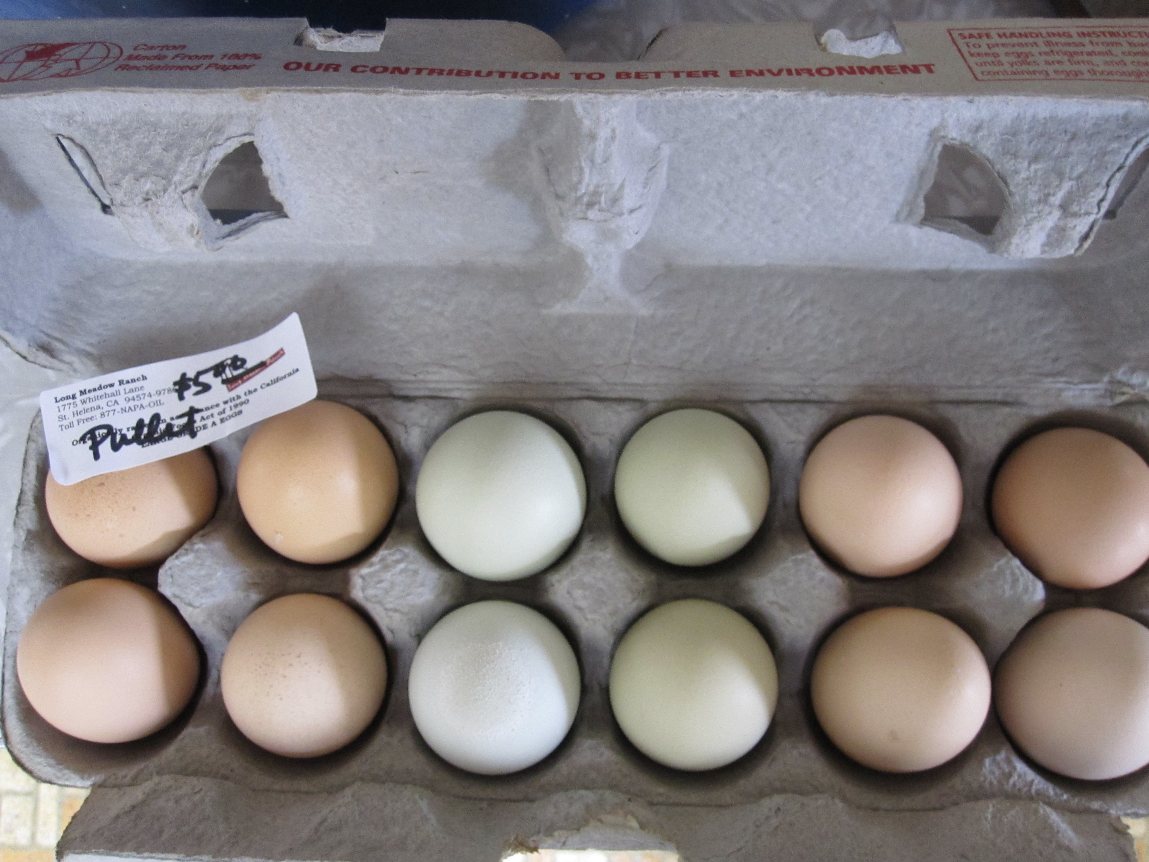 But Napa Harvest is not just about grapes! One of my favorite things to do whenever I am in the valley is to hit the LMR Rutherford Gardens. Operated by Long Meadow Ranch they are a produce pavilion right in the heart of Rutherford, across the way from Grgich Hills Winery on Highway 29. While known for great wine and free-range beef the bounty at the gardens is the produce, and although summer is high-season, I love their fall offerings. They have a newsletter that you can sign up for if you are interested in knowing what is in season in advance, but I prefer to be surprised! Recently they had amazing nobby potatoes, five varieties of garlic, zucchini, an abundance peppers and possibly the last of amazing heirloom tomatoes. If you hit the stand at just the right time you may be able to get some eggs! I was lucky recently and grabbed a set of pullets, small sized eggs, in pastel colors that would put any Easter basket to shame. And they were $5 a dozen and delicious! Plus Long Meadow Ranch makes great wine! They also offer jeep tours of their vineyards and cattle ranches!