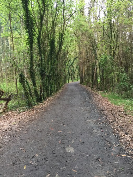 The trails were easy, a good deal of eucalyptus again which was very soothing in the wet damp air, it seemed to magnify the aroma. Our footsteps fell softly on the packed dirt path and we breathed in and out that magical air. And then it started like a low rumble. We thought it must have been a large group of pilgrims (new ones) walking together their voices a little too loud because no doubt they were excited to be approaching Santiago. As it grew we saw the first group easily overtake our steady and brisk pace. It was about 10 fifteen year old kids.